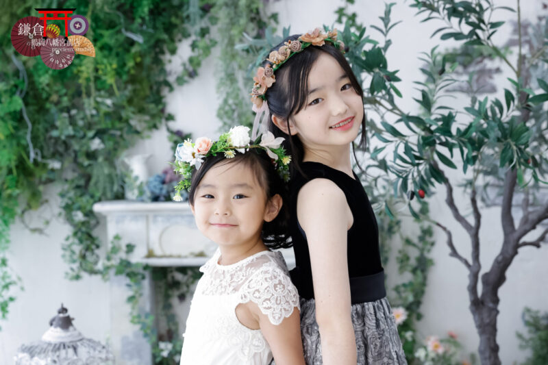七五三スタジオ撮影*白と黒のドレスでご姉妹ショット(プレシュスタジオ 鎌倉鶴岡八幡宮前店)