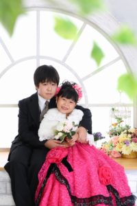 7歳の七五三の記念写真撮影 仲良しなお兄ちゃんも一緒に