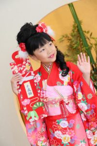 華やかなお持ち込み着物で七五三記念撮影(プレシュスタジオ 豊洲店)