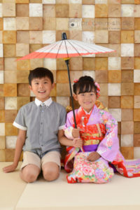 7歳の七五三の記念写真撮影 仲良しなお兄ちゃんも一緒に (プレシュスタジオ 豊洲店)