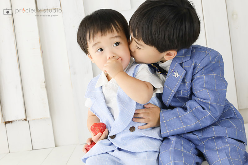 プレシュスタジオは家族写真、姉妹・兄弟写真に力を入れています。撮影時間内なら、ご兄弟・ご姉妹・ご家族写真は、追加料金なしでお受けします。