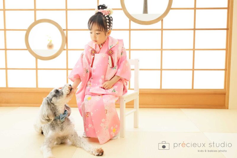 七五三写真(753) 和装七五三(着物・袴・被布) 洋装七五三(ドレス・スーツ) 七五三写真(3歳女の子) ペットと一緒に写真撮影
