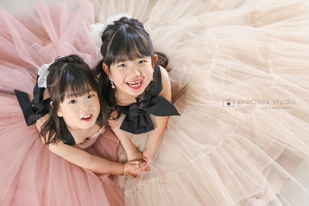 2人揃って、プレシュスタジオ横浜港北店で大人気のふわっと広がったチュールドレスを選んでくれました。