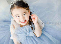 洋装で七五三スタジオ撮影*白いドレスを着た可愛いプリンセス