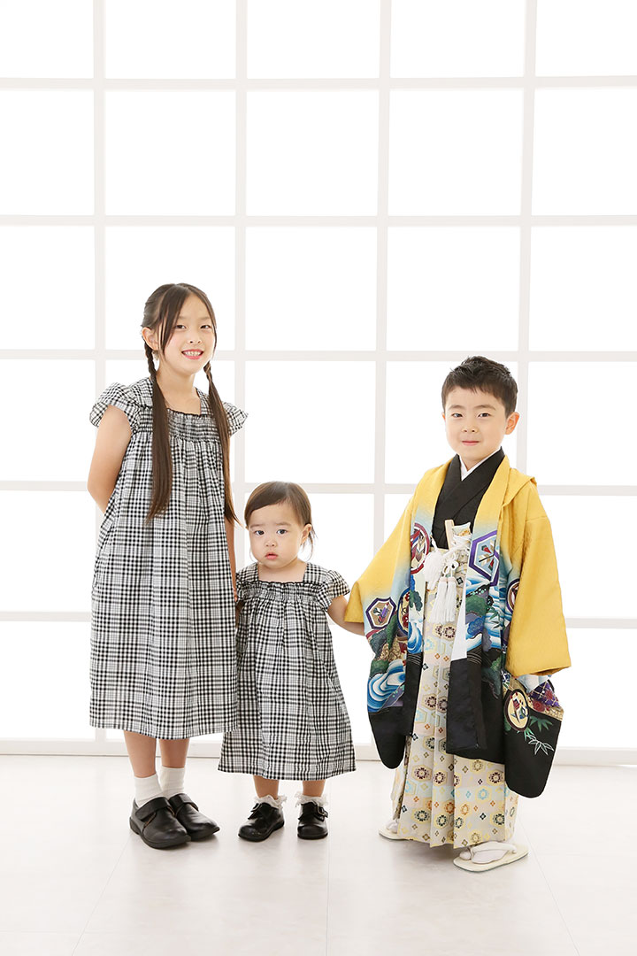 七五三写真(753) 和装七五三(着物・袴・被布) 洋装七五三(ドレス・スーツ) 七五三写真(5歳男の子) 家族写真 ファミリーフォト 兄弟写真・姉妹写真 リンクコーデで家族写真