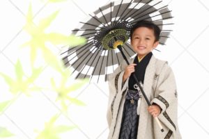 お出かけ用袴で七五三記念写真撮影 ポーズもニコニコも上手な男の子