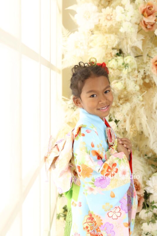 今回は海外から一時帰国で七五三の撮影に来てくれた笑顔が素敵な女の子と