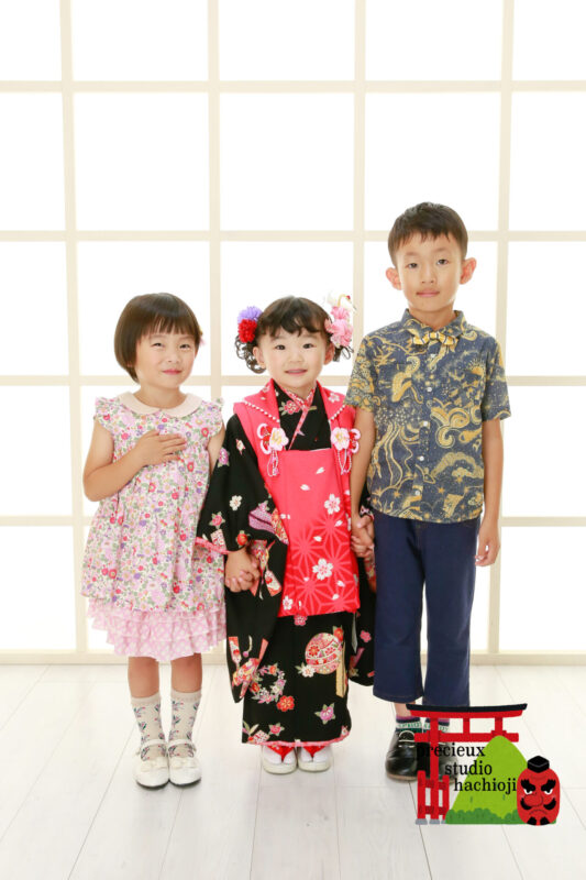 七五三写真(753) 和装七五三(着物・袴・被布) 洋装七五三(ドレス・スーツ) 七五三写真(3歳女の子) 兄弟写真・姉妹写真 リンクコーデで家族写真