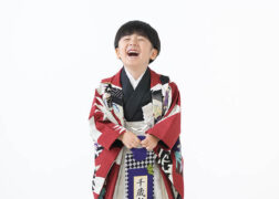 七五三記念写真撮影 赤映えるカッコいいスタイルの5歳の男の子