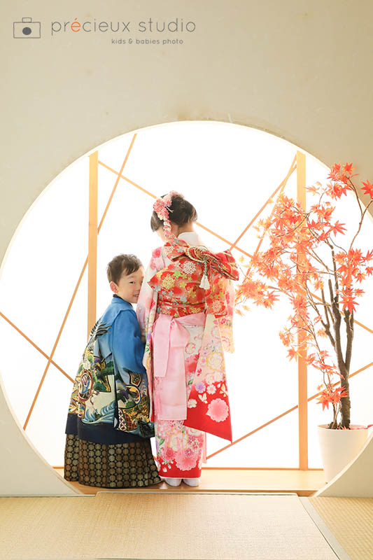七五三&ハーフ成人式の記念写真撮影 優しいお兄ちゃんと可愛い妹ちゃん