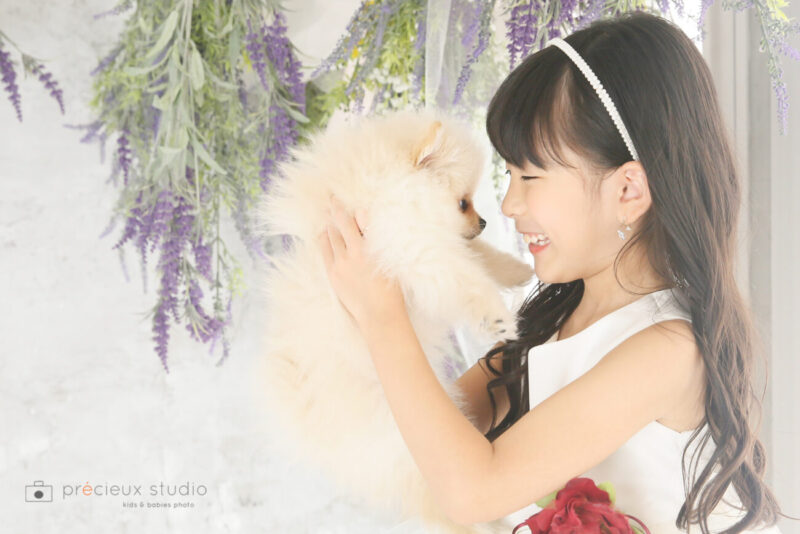 |七五三写真(753) 和装七五三(着物・袴・被布) 洋装七五三(ドレス・スーツ) 七五三写真(7歳女の子) ペットと一緒に写真撮影