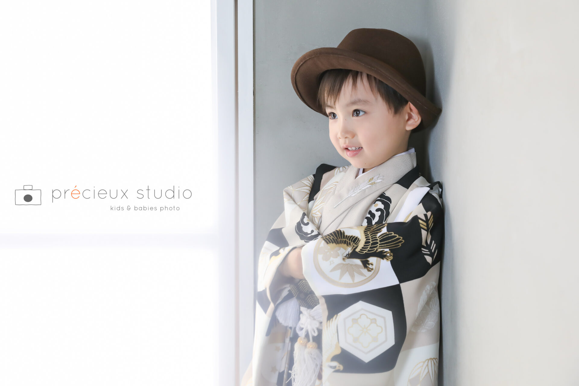 5歳七五三記念写真撮影 かっこいい表情を見せてくれた男の子(プレシュスタジオ 横浜港北店)