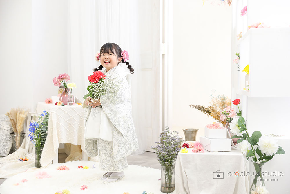 七五三写真(753) 和装七五三(着物・袴・被布) 洋装七五三(ドレス・スーツ) 七五三写真(3歳女の子) 兄弟写真・姉妹写真 生花で彩るフルールプラン