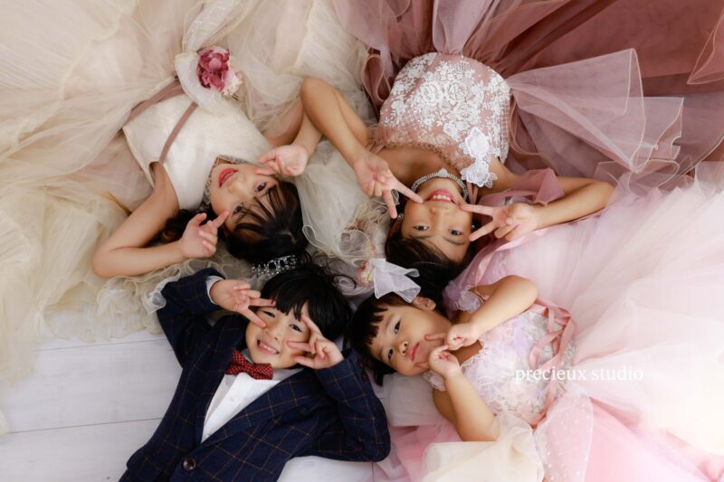 女の子たちは揃ってふわふわのドレスに身を包んで撮影