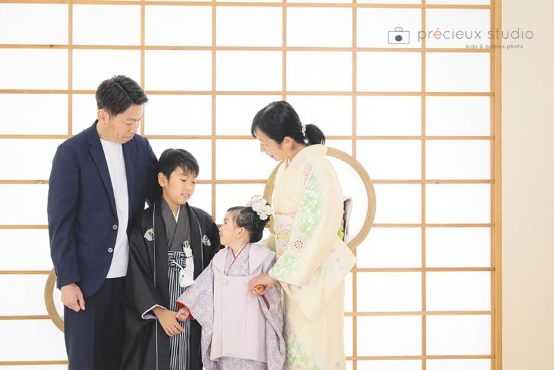 七五三写真(753) 和装七五三(着物・袴・被布) 七五三写真(3歳女の子) ハーフ成人式 十歳の祝い 家族写真 ファミリーフォト 兄弟写真・姉妹写真 ママも着物・和装で家族写真