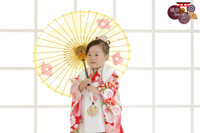 3歳の七五三スタジオ撮影*着物姿でドキドキの女の子✨(プレシュスタジオ 鎌倉鶴岡八幡宮前店)