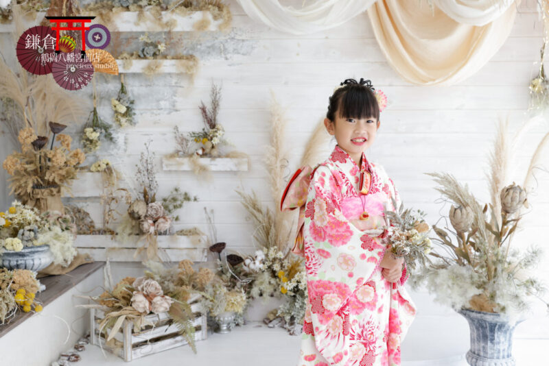 JR「鎌倉」駅徒歩10分、鶴岡八幡宮へ徒歩3分の完全予約制・貸切型写真館プレシュスタジオ鎌倉鶴岡八幡宮前店です。お庭を再現した緑いっぱいの写真スタジオに、鎌倉らしい和の風情と自然光の柔らかな光がポイント。人力車でのお宮参りや七五三着物レンタルも好評です。