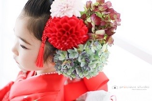 華やかなお持ち込み着物で七五三記念撮影(プレシュスタジオ 豊洲店)