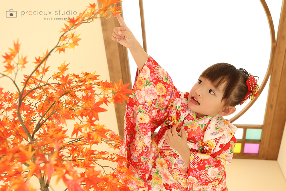 華やかなお持ち込み着物で七五三記念撮影(プレシュスタジオ 豊洲店)
