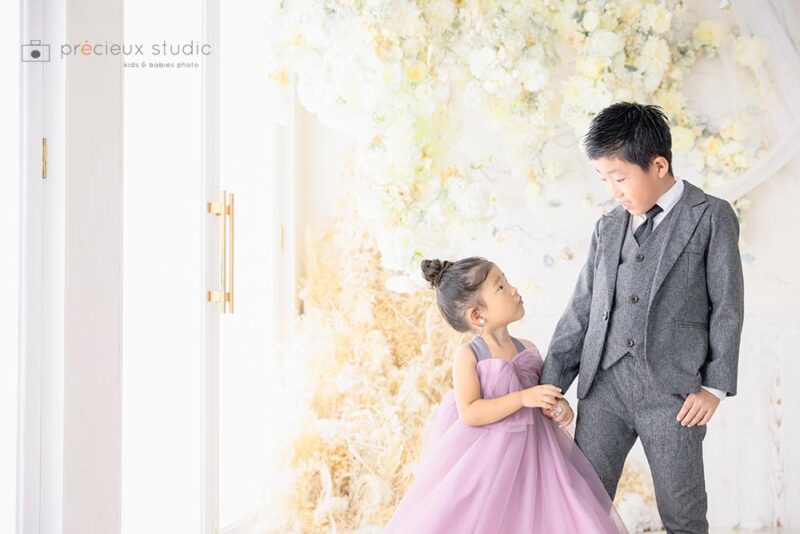 2着目の洋装では、お兄ちゃんはスーツに、妹ちゃんは大人気のチュールドレスにお着替えいただきました!