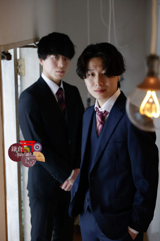 成人式記念写真*スーツでイケメン双子さんの写真撮影(プレシュスタジオ 鎌倉鶴岡八幡宮前店)