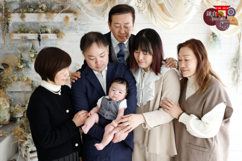お宮参り スタジオ撮影*輝く笑顔が可愛すぎる赤ちゃん(プレシュスタジオ 鎌倉鶴岡八幡宮前店)