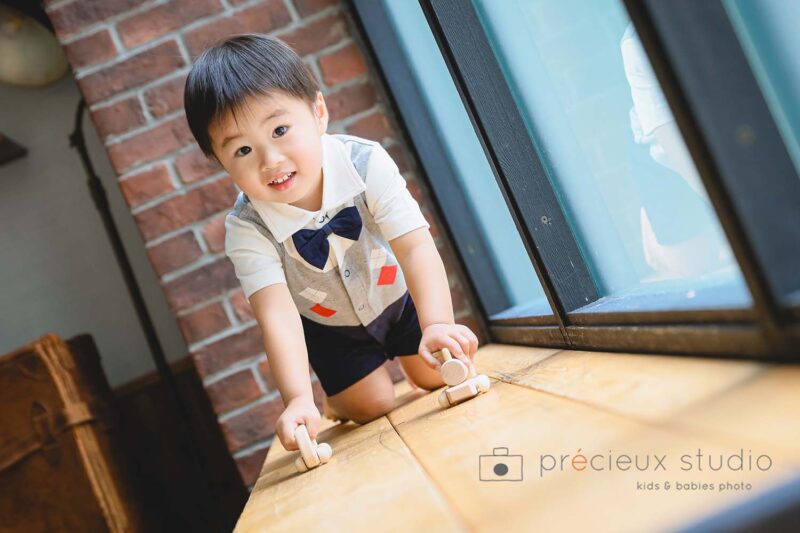 2歳のお誕生日記念写真 仕草が可愛い男の子の撮影