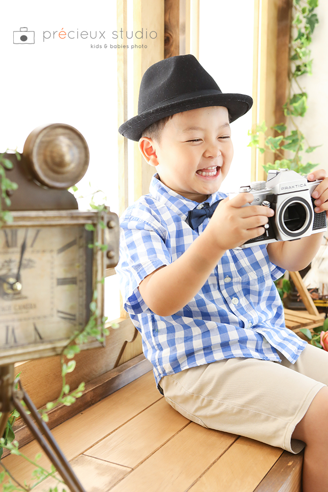 ポーズが上手な男の子の記念写真 お持ち込みの洋服&レンタルスーツで撮影(プレシュスタジオ 豊洲店)