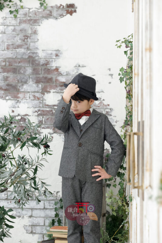 ポーズが上手な男の子の記念写真 お持ち込みの洋服&レンタルスーツで撮影