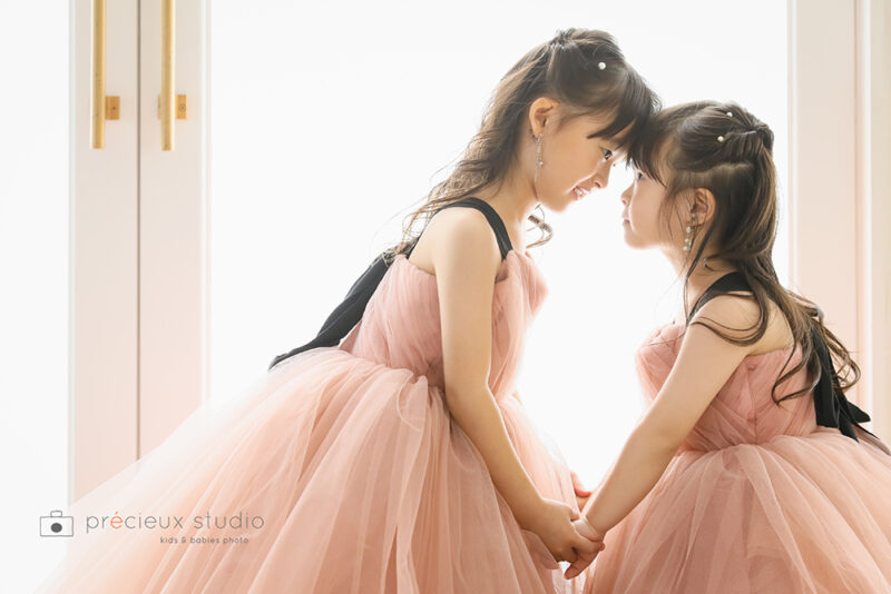 2人はお揃いのお色味のチュールドレスを着てくれました。