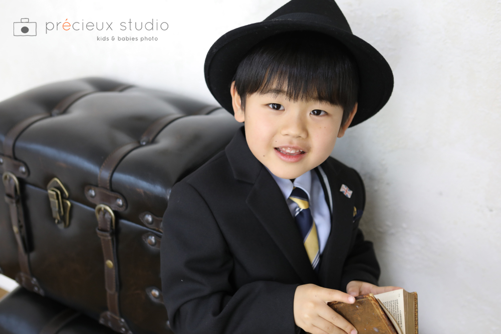 ポーズが上手な男の子の記念写真 お持ち込みの洋服&レンタルスーツで撮影