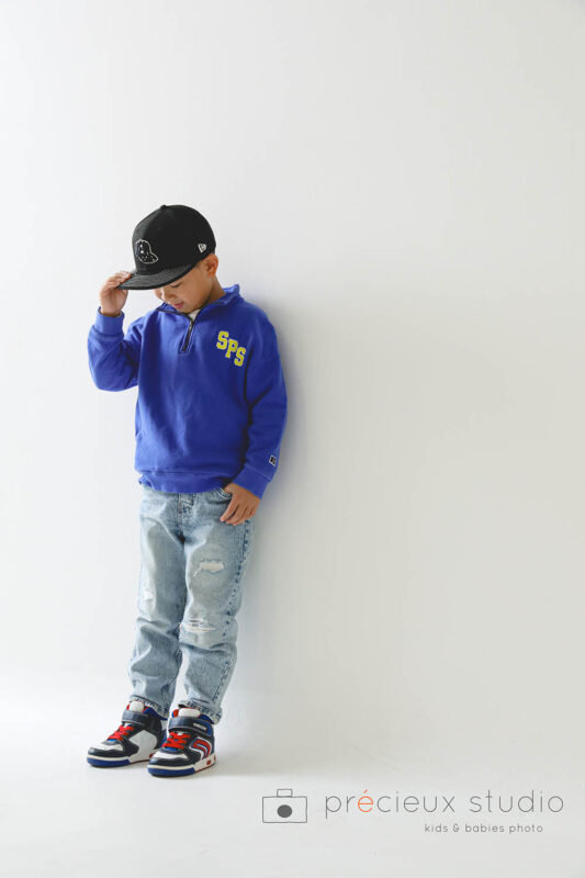 ご家族撮影の記念写真撮影 ポーズが上手な男の子 (プレシュスタジオ 豊洲店)