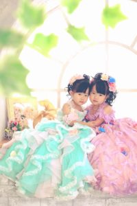 3歳の七五三の記念写真 お姉ちゃんも一緒にお着物&ドレスで撮影