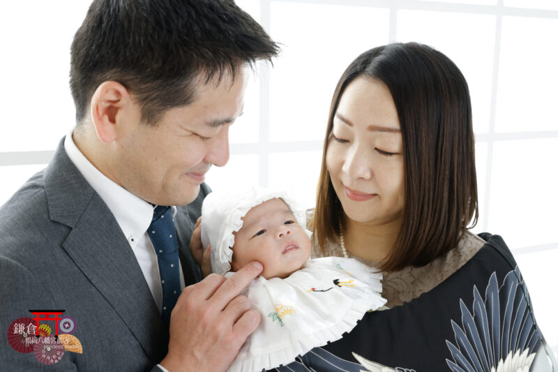 お宮参り スタジオ写真撮影*困り眉がかわいい男の子(プレシュスタジオ 鎌倉鶴岡八幡宮前店)