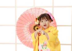 黄色い着物&チュールドレスで3歳の七五三写真撮影 プレシュスタジオ八王子店
