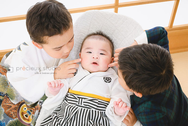 優しいご兄弟の七五三とお宮参りのご記念写真撮影(プレシュスタジオ 豊洲店)