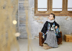 お出かけ用袴で七五三記念写真撮影 ポーズもニコニコも上手な男の子