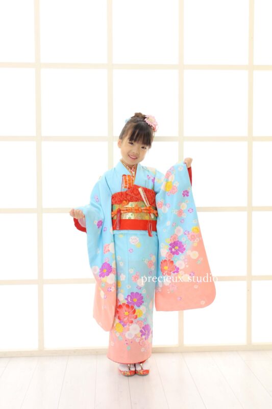 今回は水色の着物がとっても似合う可愛い7歳女の子の紹介です!