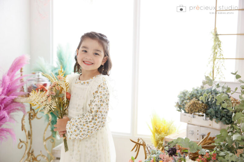 完全予約制・貸切型写真館プレシュスタジオ横浜港北店 et Fleur(エ フルール)は、2022年9月にオープンしたこども写真館。生花を使ったフラワーアレンジメントフォトでとびきり可愛い記念写真を。3ヶ月後まで撮影予約受付中。