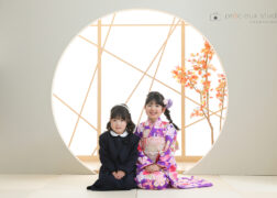 七五三の記念写真撮影 2人で着物を着て一緒に