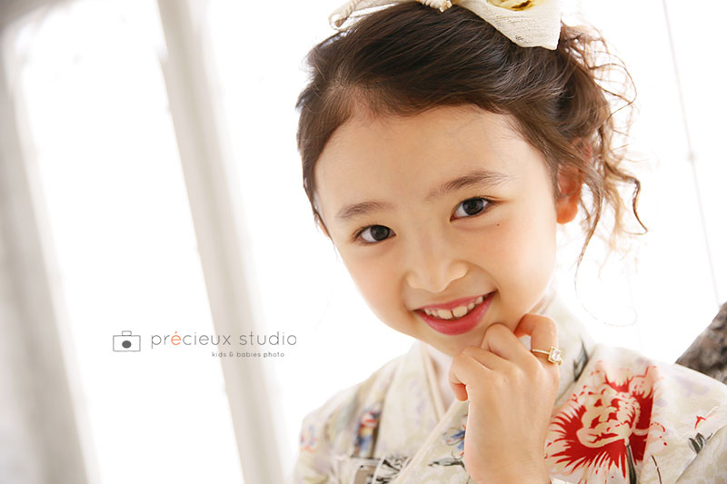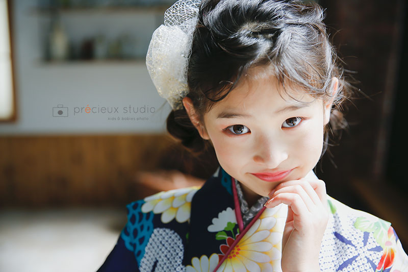 自分で選んだ着物で7歳の七五三記念撮影 大人っぽい表情も上手な女の子(プレシュスタジオ 横浜港北店)