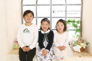 7歳の七五三の記念写真撮影 仲良しなお兄ちゃんも一緒に (プレシュスタジオ 豊洲店)