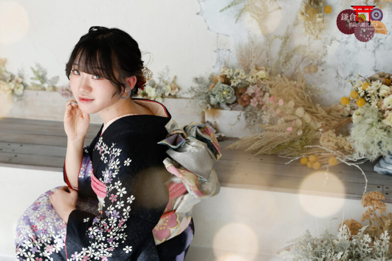 成人式記念写真 スタジオ撮影*可愛い振袖とネイルで迎えるはたちの記念撮影(プレシュスタジオ 鎌倉鶴岡八幡宮前店)