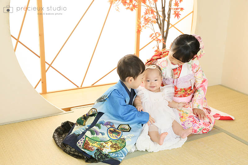 七五三の記念写真撮影は、完全予約制・貸切型こども写真館のプレシュスタジオで。