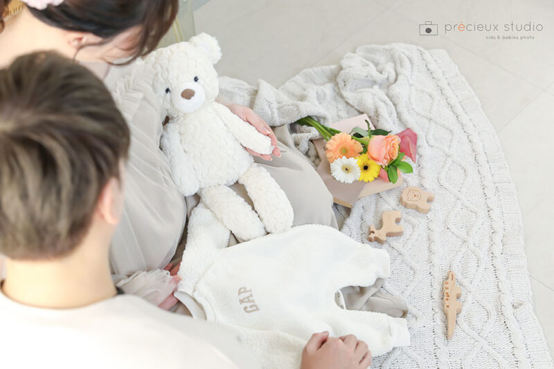 完全予約制の貸切型写真館プレシュスタジオで撮影されたマタニティフォトギャラリーです。プライベート空間で妊婦さんお1人でも、ご夫婦でも、お兄ちゃんお姉ちゃんになるお子さんと一緒でも撮影できます。